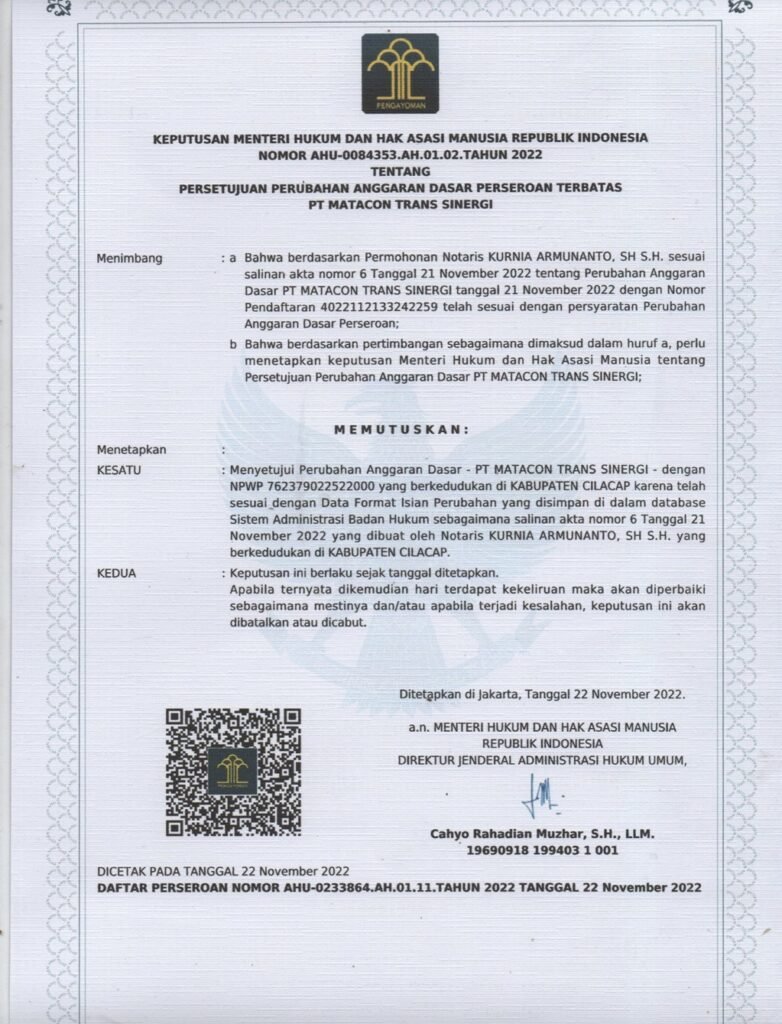 Mataconews diterbitkan oleh PT. Matacon Trans Sinergi, dengan nomor registrasi di Menkumham (AHU)